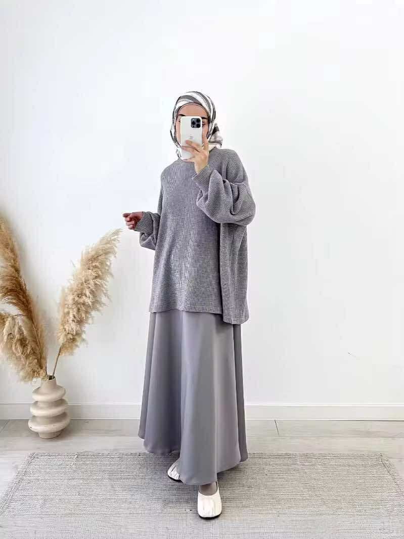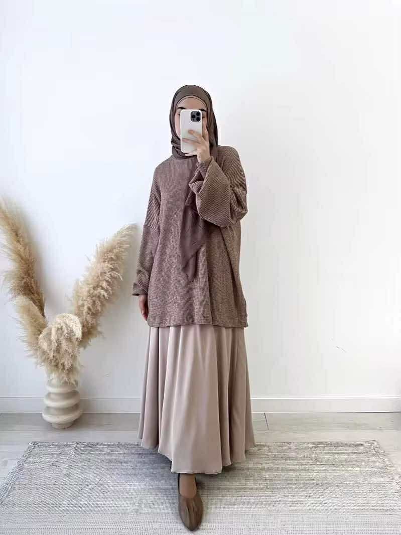 Elevate your everyday modest wardrobe with the Knit Top and Crepe Skirt Set — a perfect blend of comfort, softness, and sophistication. This effortlessly chic two-piece features a textured knit top paired with a flowy maxi skirt, creating a relaxed yet graceful silhouette.