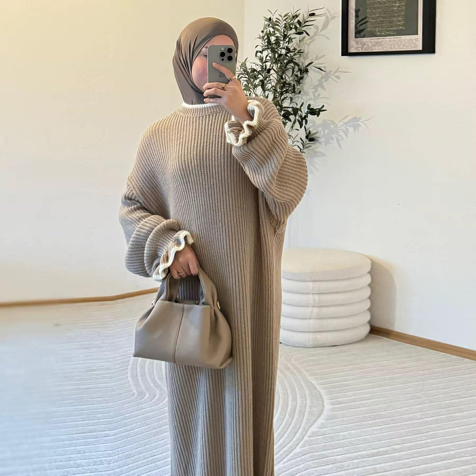 Style Tip: Pair with a neutral hijab, crossbody bag, and ankle boots for an elevated cozy-chic outfit.