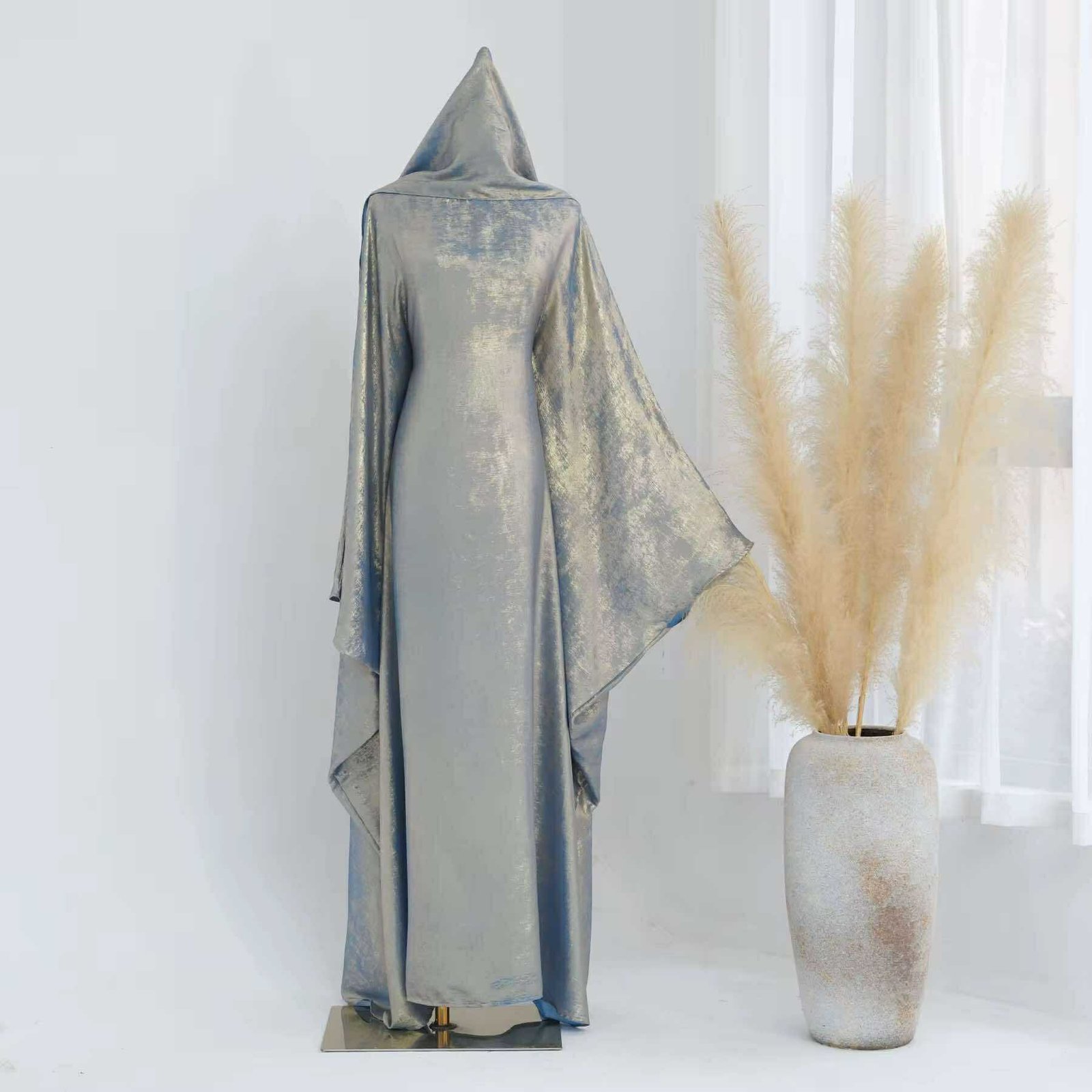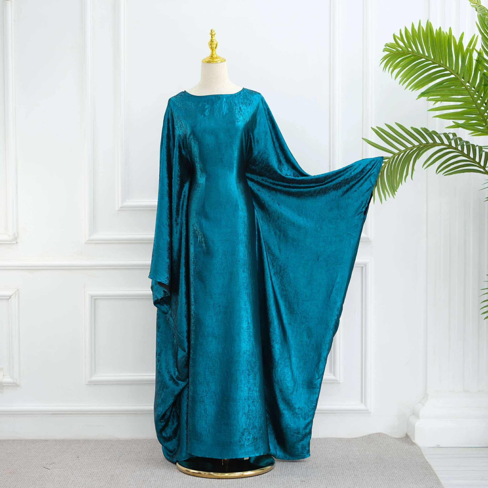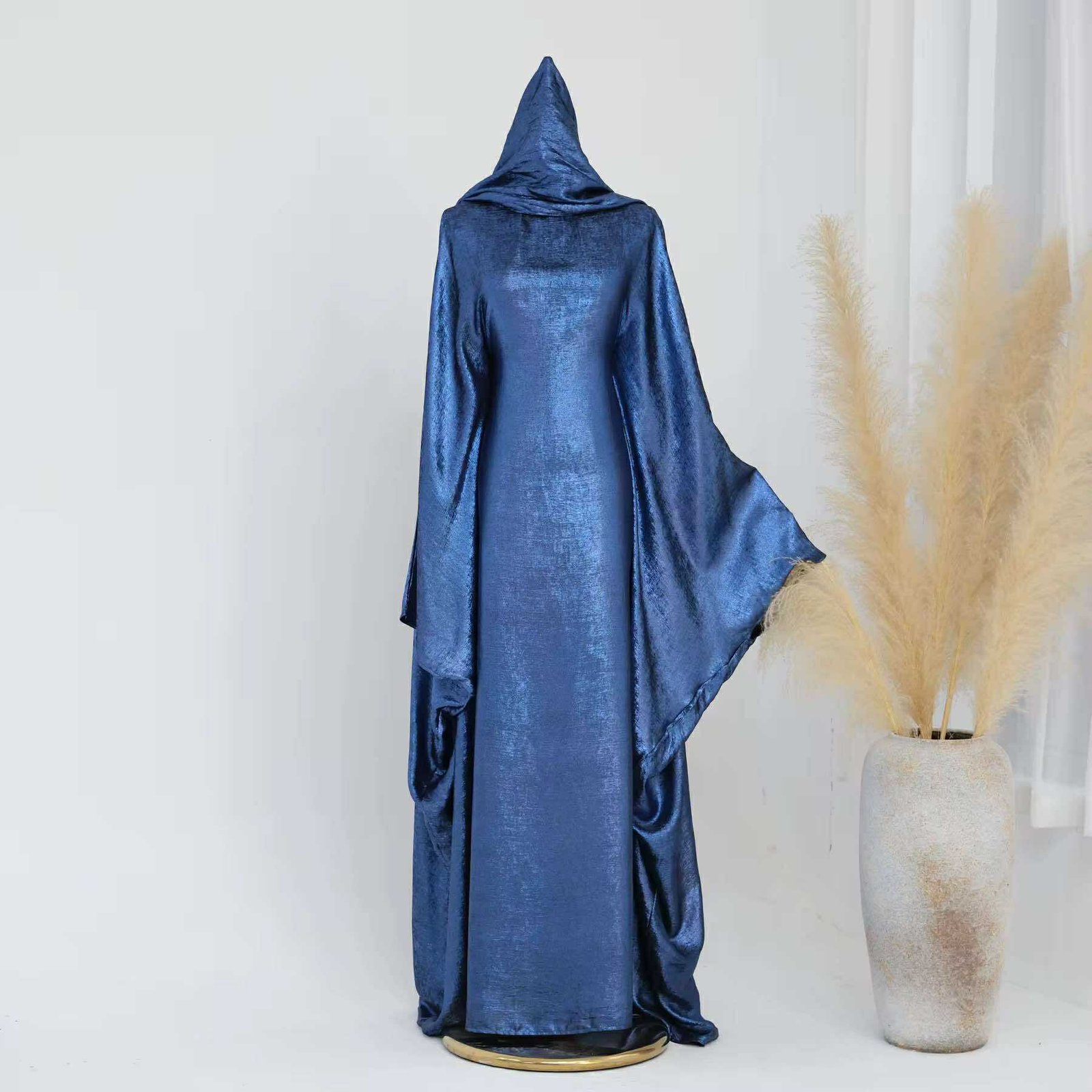 Elevate your modest wardrobe with the Lamia Shine Butterfly Abaya, a stunning piece crafted from lustrous polyester fabric for a sleek and polished look. Designed in a flowy butterfly silhouette, it offers effortless elegance with a built-in tie waist belt that allows you to cinch the waist to your desired fit.