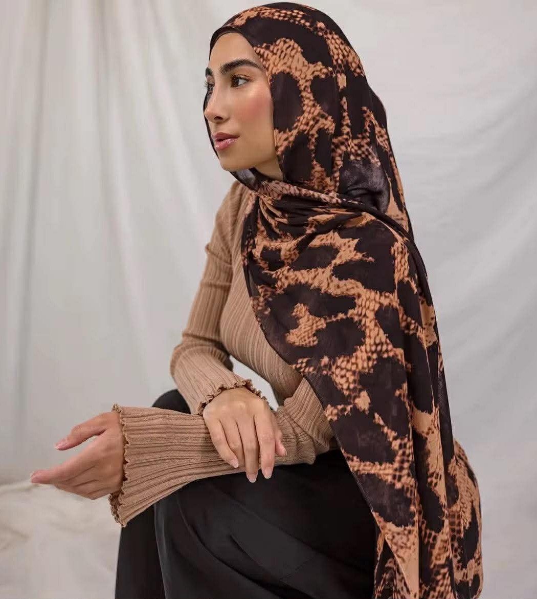 Inspired by the raw beauty of the wild, the Savannah Grace Hijab features a rich animal-inspired print in warm earthy tones. Crafted from premium viscose, this hijab offers a soft, breathable feel with a graceful drape that elevates both everyday and statement looks. The double-sided print ensures versatility, allowing effortless styling from every angle.
